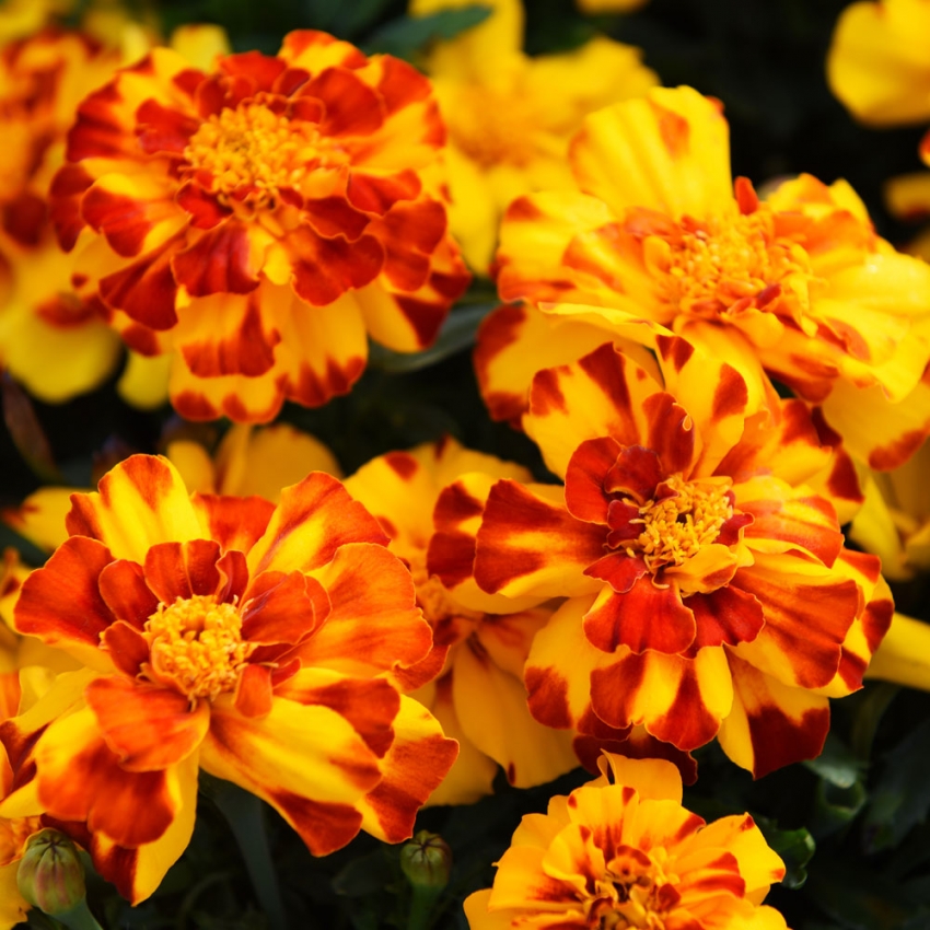 Бархатцы отклоненные дуранго болеро - это удивительное растение с бордово-желтыми цветками, которые радуют глаз в течение нескольких месяцев в году. Сорт durango bolero известен своей неприхотливостью и прекрасно подходит для групповых посадок. Высота этого растения может достигать 20-25 см, что делает его идеальным выбором для создания красивых цветочных композиций.