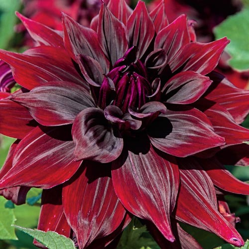 Саженцы и рассада декоративной георгины Бригитта Алида (Dahlia cultorum) удивляют формой своих округлых цветков. Они кажутся колючими, благодаря крупным лепесткам, свёрнутым в трубочку.