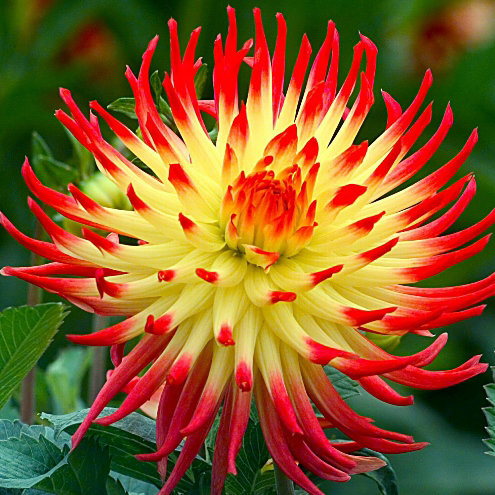 Луковицы георгины махровой Jessica (Dáhlia variabilis) порадуют яркой окраской цветов, а также длительным цветением. Высота взрослых кустов варьируется от 60 до 140 сантиметров. В июле распускаются крупные цветы с желтыми лепестками, кончики которых имеют ярко-красную окраску. Цветение длится до сентябрьских ночных заморозков. Этот сорт можно выращивать для срезки и последующего составления роскошных букетов. Луковицы георгины Jessica широко используются при оформлении ландшафта загородных участков. Эффектные кусты можно размещать вдоль садовых дорожек, заборов или стен сооружений. Летом цветы источают приятный тропический аромат, поэтому их также можно высаживать возле мест, предназначенных для отдыха.