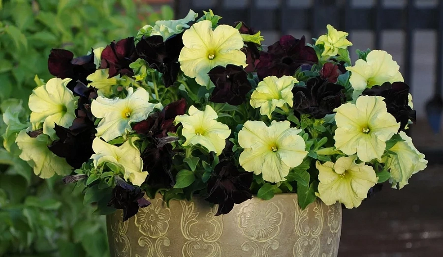 Сочетание черно-салатовых цветов цветков петунии создает неповторимую атмосферу загадочности и изыска в вашем саду. Благодаря продолжительному времени цветения весной, летом и начале осени, вы будете наслаждаться красотой этого растения на протяжении длительного времени.